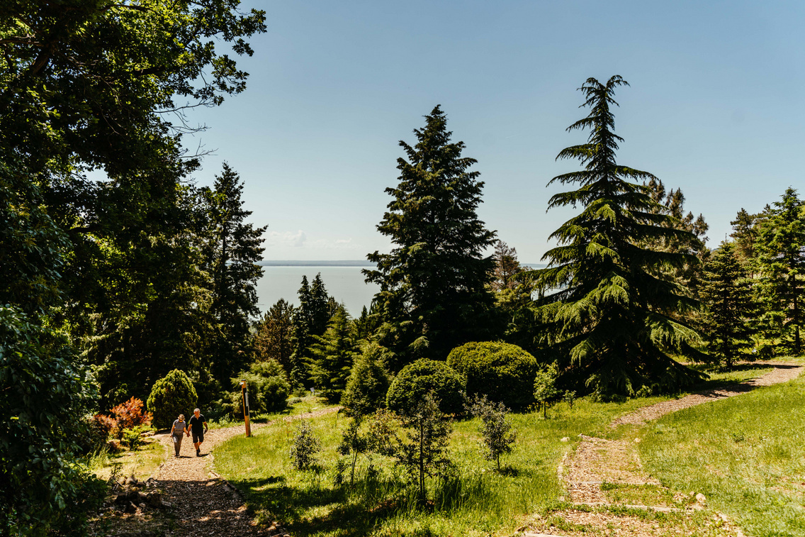 A Veszprémtől 25 perc autóútra található zirci Ciszterci Arborétumban jelenleg mintegy hatszázféle fa és cserje található, a leghíresebbek a több száz éves simafenyő, a „jurányi hárs” és a gumiszerű kérgű Amur menti parázsfa. Az arborétumot a Cuha-patak szeli át, a bejáratnál egy kis tavat táplálva. A látogatók a természetes fás-cserjés növényzet mellett változatos madárvilágban is gyönyörködhetnek, a sok idős, odvas fa elsősorban az énekesmadarakat vonzza, de denevérek és mókusok is megtelepednek itt. A tóhoz közelebb találjuk az idén százhúsz éves Folly Arborétumot, ahol különleges cédrusok és ciprusok között sétálhatunk, az élményhez mesebeli balatoni panoráma is tartozik. Az arborétum különleges elhelyezkedése lehetővé teszi, hogy igazi növényritkaságokra bukkanjunk a kertben, de a családi szőlőbirtok ölelésében családtörténeti kiállítást, tobozkörutat, szabadtéri szabadulószobát és meseösvényt is kínálnak, így biztosan nem fogunk unatkozni.
